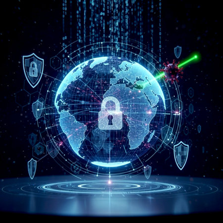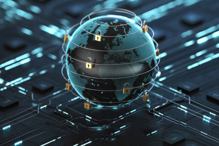 A digital representation of a globe surrounded by locks symbolizes the importance of global data security in today's interconnected world.