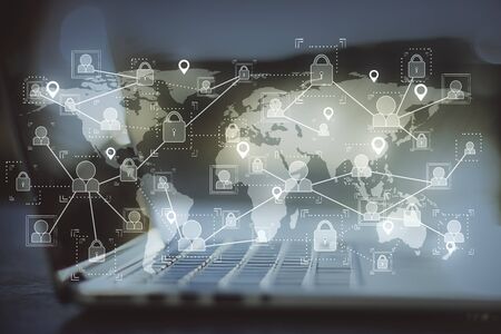 Global network security concept. 3d rendering toned image double exposure