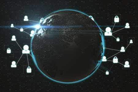 Worldwide digital data security network infrastructure, data breach concept. Some elements of the image furnished by NASA.