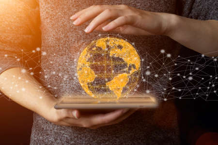 earth in hands - environment concept, global connection concept, Information Technology Concept. Business, Technology, Internet and network concept