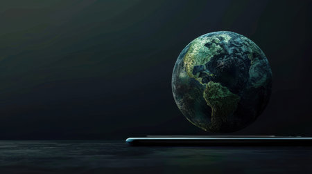 Digital representation of Earth hovering above smartphone, symbolizing technology and global connectivity. image evokes sense of innovation and environmental awareness