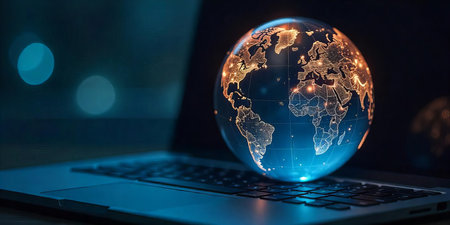 Mapping Global Internet Connectivity and Information Access through Laptop Screen. Concept Internet Usage, Global Connectivity, Information Access, Laptop Screens, Mapping Technology