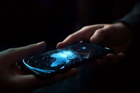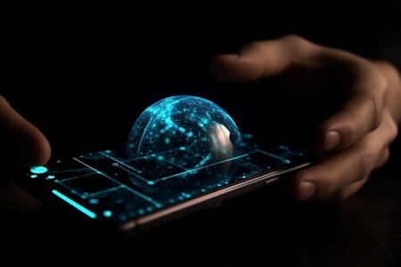This captivating image features a hand holding a smartphone, with a vibrant, illuminated globe floating above the device. The scene symbolizes the connection between technology and the world, highlighting the power of mobile devices in bridging distances and fostering global communication.