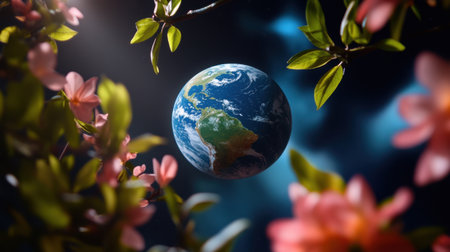 Immerse yourself in the spirit of World Environment and Earth Day with this captivating image of a globe surrounded by nature, highlighting eco-friendly practices, sustainability, and our shared