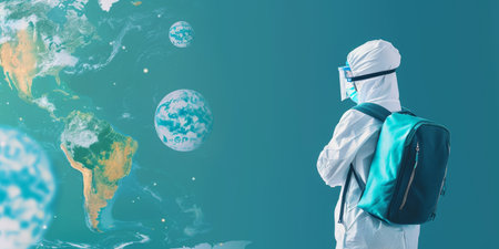 Ebola earth wearing a medical mask on a space background, concept of a global virus attacking planet Earth