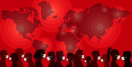 Crowd of people protecting themselves against pandemic epidemic infection. Group of people wearing medical masks. Virus contamination. Coronavirus -2019-nCoV-. Vaccination. Antivirus