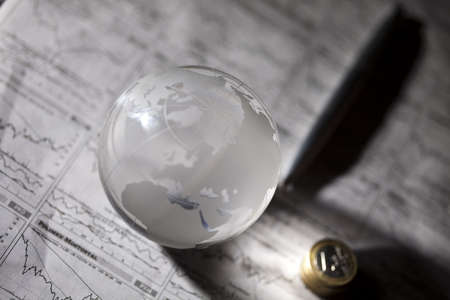 Gothic globe against stock market charts and coins a unique business concept in photography