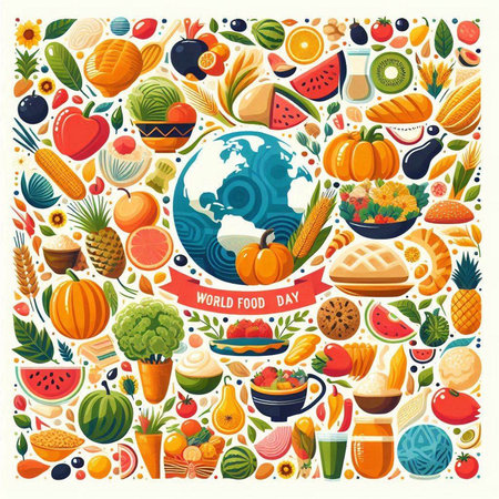 World food day poster with healthy food and nutrition symbols flat vector illustration