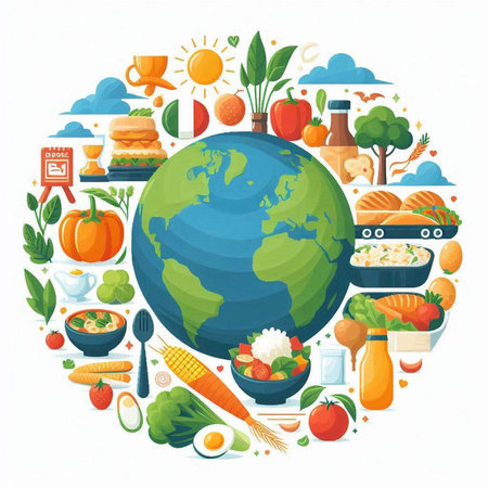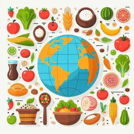 Vector illustration of healthy food around the world. Healthy lifestyle concept.