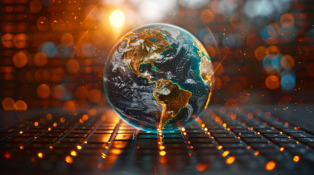 Detailed globe showcasing continents and oceans, emphasizing beauty of Earth with vibrant colors and textures. This symbolizes global unity and environmental awareness