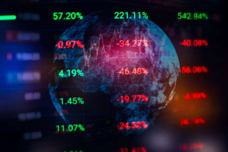 Stock market financial indicator on LED. Abstract stock market financial indicator background. Stock market financial data trade concept. Global financial graph analysis concept.
