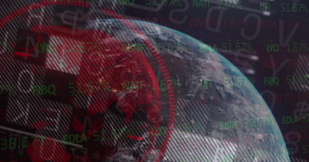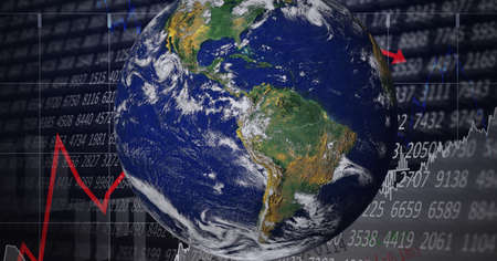 Composition of globe over financial data processing. global environment, finance and networking concept digitally generated image.