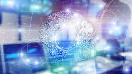 3D earth hologram, Globe, WWW, Global Business and Telecommunication.