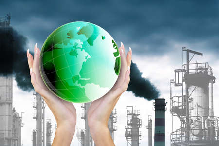 Man holding planet Earth as a green, ecological and renewable energy world concept. Eco concept, ecology, clean energy and environment.