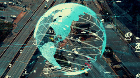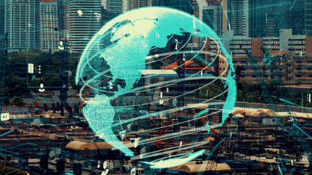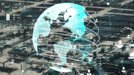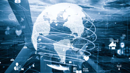 Global connection and the internet network alteration in smart city . Concept of future wireless digital connecting and social media networking .