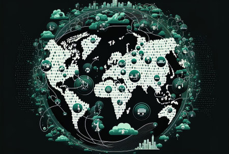 three-dimensional map pinpointing major business capitals of the world AI generated illustration