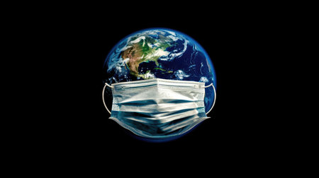 Ebola earth wearing a medical mask on a space background, concept of a global virus attacking planet Earth