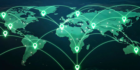 Global Network Map Connected Locations GPS Tracking Worldwide Connections