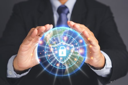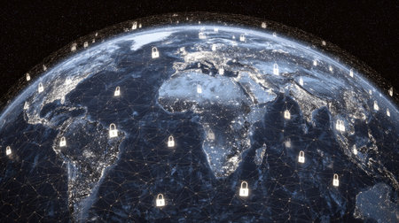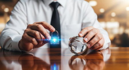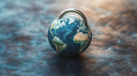 Globe with a padlock highlighting global security, data protection, and access control in a interconnected world. Generative ai