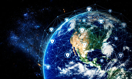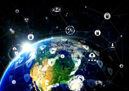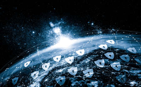 Global network connection covering earth with link of innovative perception . Concept of international trading and digital investment, 5G global wireless connection and future of internet of things .