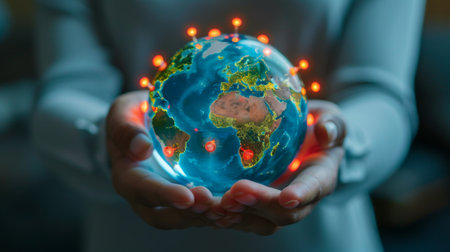 Hope for Earth: Human Hands Cradling a Glowing Globe with Tender Care and Responsibility