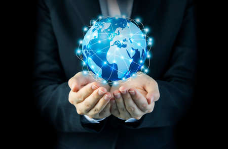 earth in hands - environment concept, global connection concept, Information Technology Concept. Business, Technology, Internet and network concept