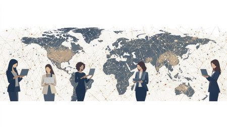 Diverse people shopping online across different devices, from continents connected by networks, --chaos 30 --ar 16:9 --v 6.1 Job ID: eae6de1b-f420-4770-b8c4-79a61f3b8421
