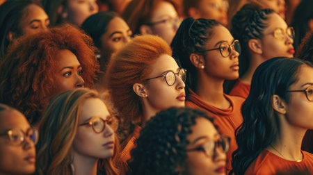 Diverse group of women showcasing beauty and strength, with varying hairstyles and colors, demonstrating confidence, unity, and empowerment in contemporary fashion