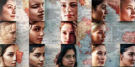 Collage of portraits of beautiful young women with different nationalities.