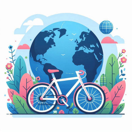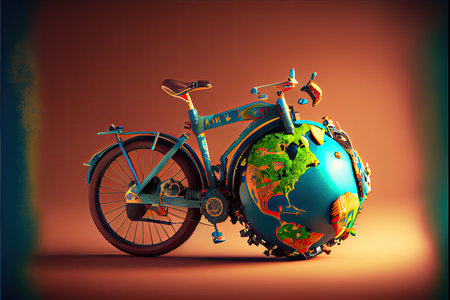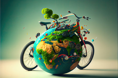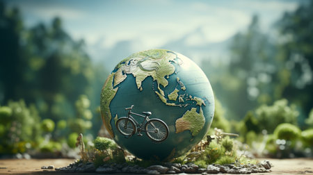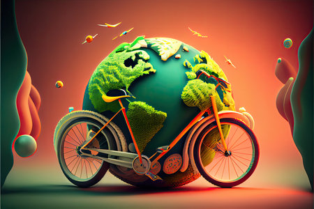3rd June World Bicycle Day. Green bicycle and world. Environment preserve.