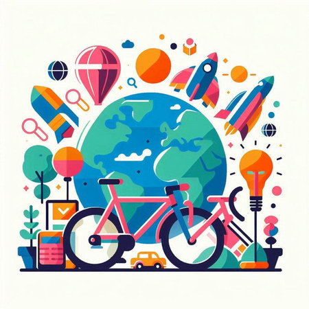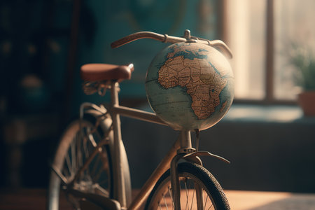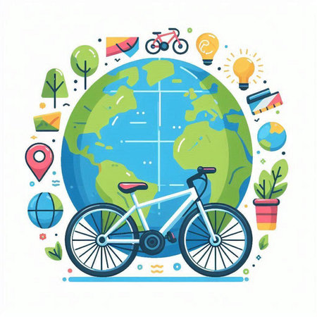 Bicycle and globe. Eco friendly transport. Vector flat illustration.
