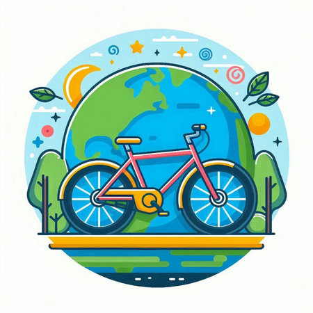 world bike day. Celebration happy globe riding world. June 3. Go Green Save Environment. fresh air, energy of nature, relaxation, freedom. Active healthy lifestyle.