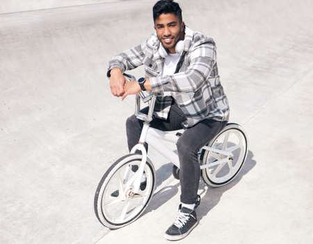 Just me and my BMX. Full length portrait of a handsome young man riding his BMX outside.