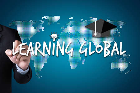 Graduation cap with Earth globe. Concept of global business study, abroad educational, Back to School, Study abroad business in universities. Elements of this image furnished by .