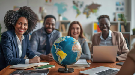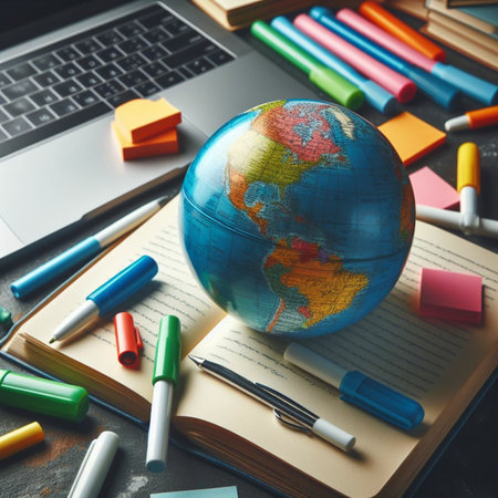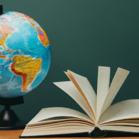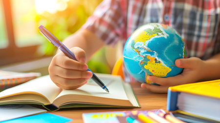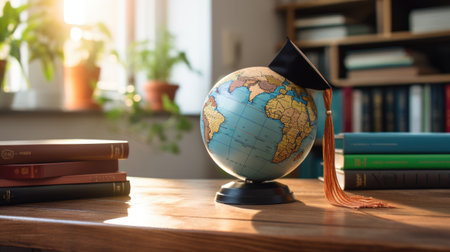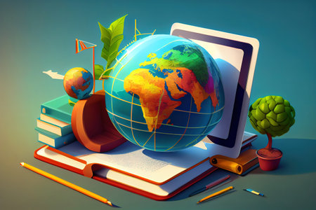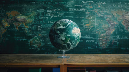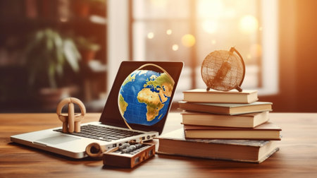 Distance learning, online education, back to school concept. Geography globe. Generative Ai