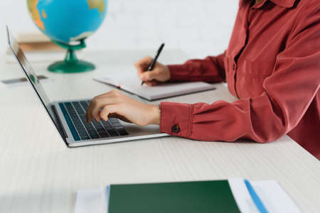 Unrecognizable woman working as a virtual travel agent and having a video meeting with a client