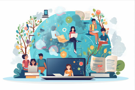 Digital Online Education, distance learning, back to school concept, 3D Illustration
