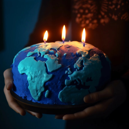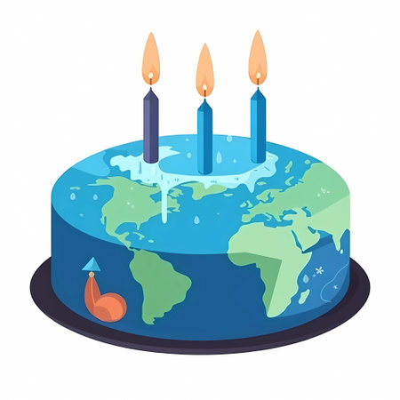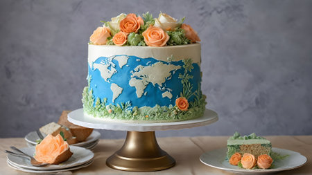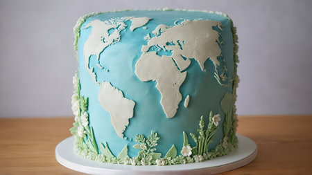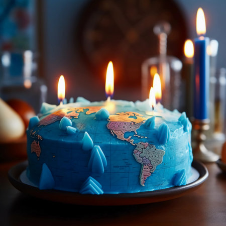 A stunning cake resembling a world map adorned with candles commemorates International Mother Earth Day, symbolizing global unity and environmental consciousness