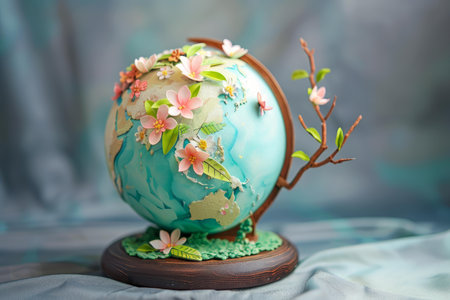 Exquisite handcrafted globe with floral designs set against a soft background