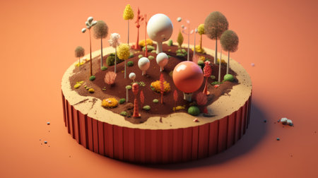 earth-shaped cake with green leaves decoration, created with generative ai