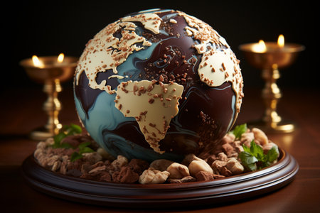 Earth globe made of brown chocolate. A high quality image making by generative ai.