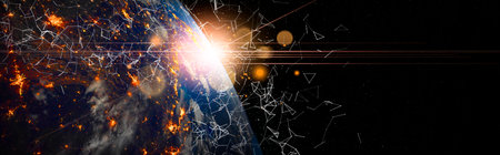 Communication technology for internet business. Global world network and telecommunication on earth cryptocurrency and blockchain and IoT.