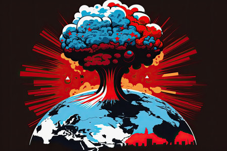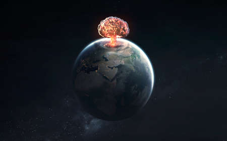 Nuclear explosion over Earth as an illustration. In the event of a global conflict civilization as we know it would be destroyed. Nasa contributed to the image by providing some of the elements seen