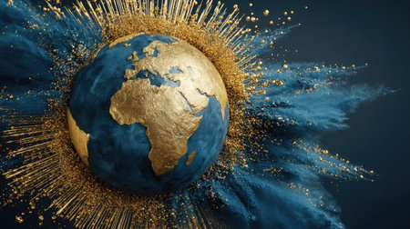 Global warming concept. 3D illustration of Earth planet covered with gold particles.