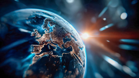 Generative AI : Collage of world globe from space in a star field with sun Earth and galaxy Elements of this image are furnished by NASA