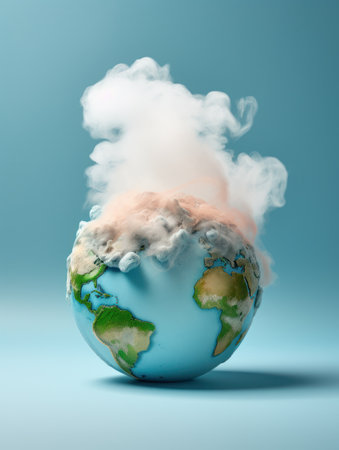 Stunning depiction of Earth surrounded by clouds, showcasing illuminated continents and oceans under dramatic lighting for environmental themes.