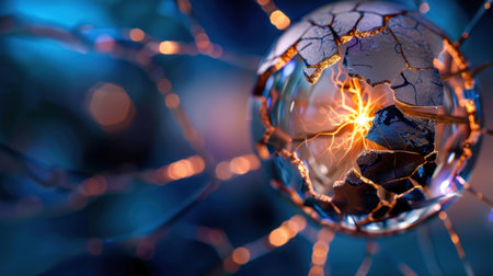Stunning image of a cracked globe revealing illuminated energy veins against a captivating blue background, symbolizing the intersection of technology and nature.