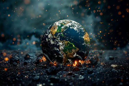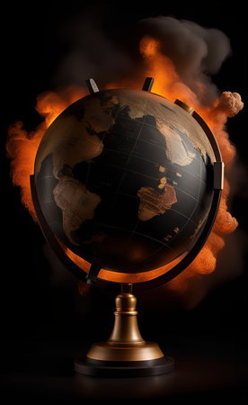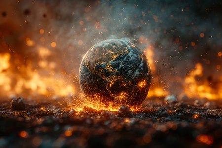Devastating impact of global warming earth globe consumed by flames in powerful photography shot