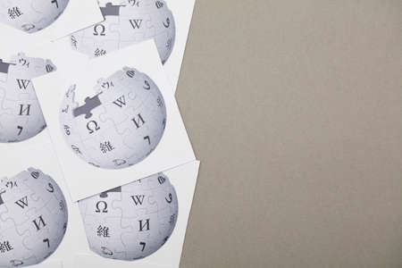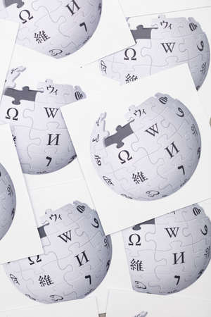 OXFORD, UK - FEB 16 2017: Wikipedia online encyclopedia logo printed on paper
