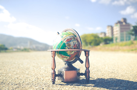 Ancient globe, isolated on a Soft blue and Pink Pastel